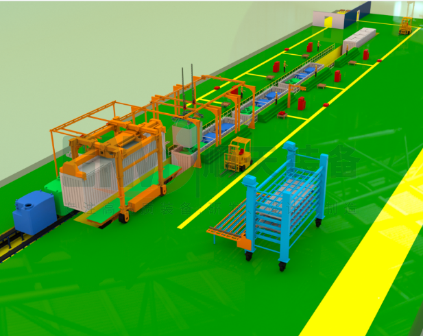 容量集装箱装配线采用直线装配线形式,在各个工位完成固定工序,大大提高了容量容器装配效率。